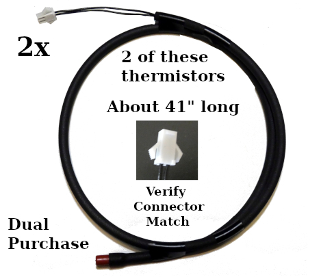 This OEM Dometic Waeco long thermistor is designed for CFF70DZ, CFX375DZ, and CFX395DZ WiFi models with serial number higher than 26650195. The cord length is approximately 1030 mm / 40.6". Dual Zone fridges require two thermistors; this kit provides both thermistors.